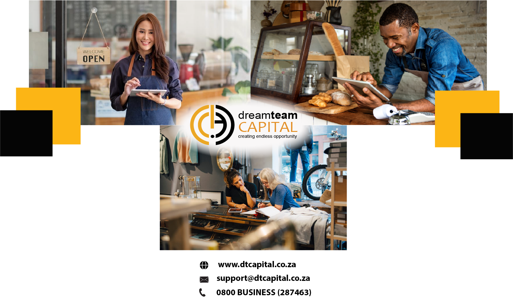 Dream Team Capital is proud to support the growth of the South African economy. Our expertise is not limited by geography or sector. Whether your business is in Johannesburg, Cape Town, Durban, or a burgeoning smaller town, we have the experience to guide you through the Vodacom Business application process, ensuring you present your best case for funding.